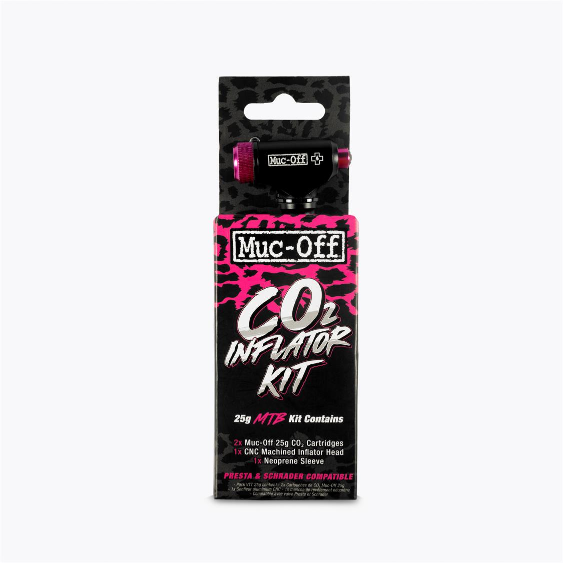 The Muc-Off Inflator kits help riders quickly inflate their tyres and get back to riding in no time! Coming in 25g cartridge size for MTB and 16g for road inflating tyres up to 30psi and 100psi from flat respectively. Each kit contains 2x cartridges, 1x compact and durable CNC-machined inflator head with soft-touch press down button which easily controls CO2 release. Dual head nozzle compatible with Presta and Schrader valves and 1x neoprene sleeve to help avoid freeze burn. Cartridges are also available separately.
