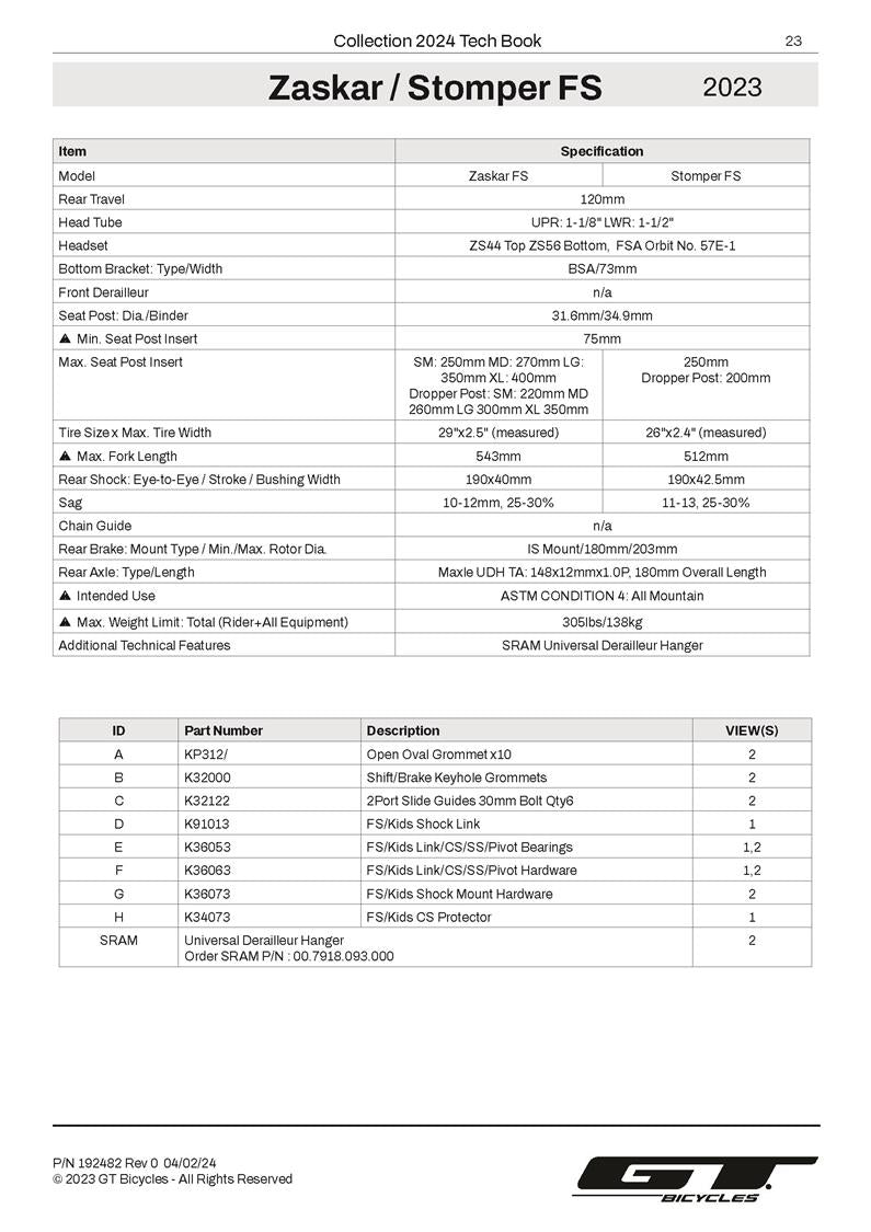 GT Stomper FS 2021 - 2023 Frame Parts