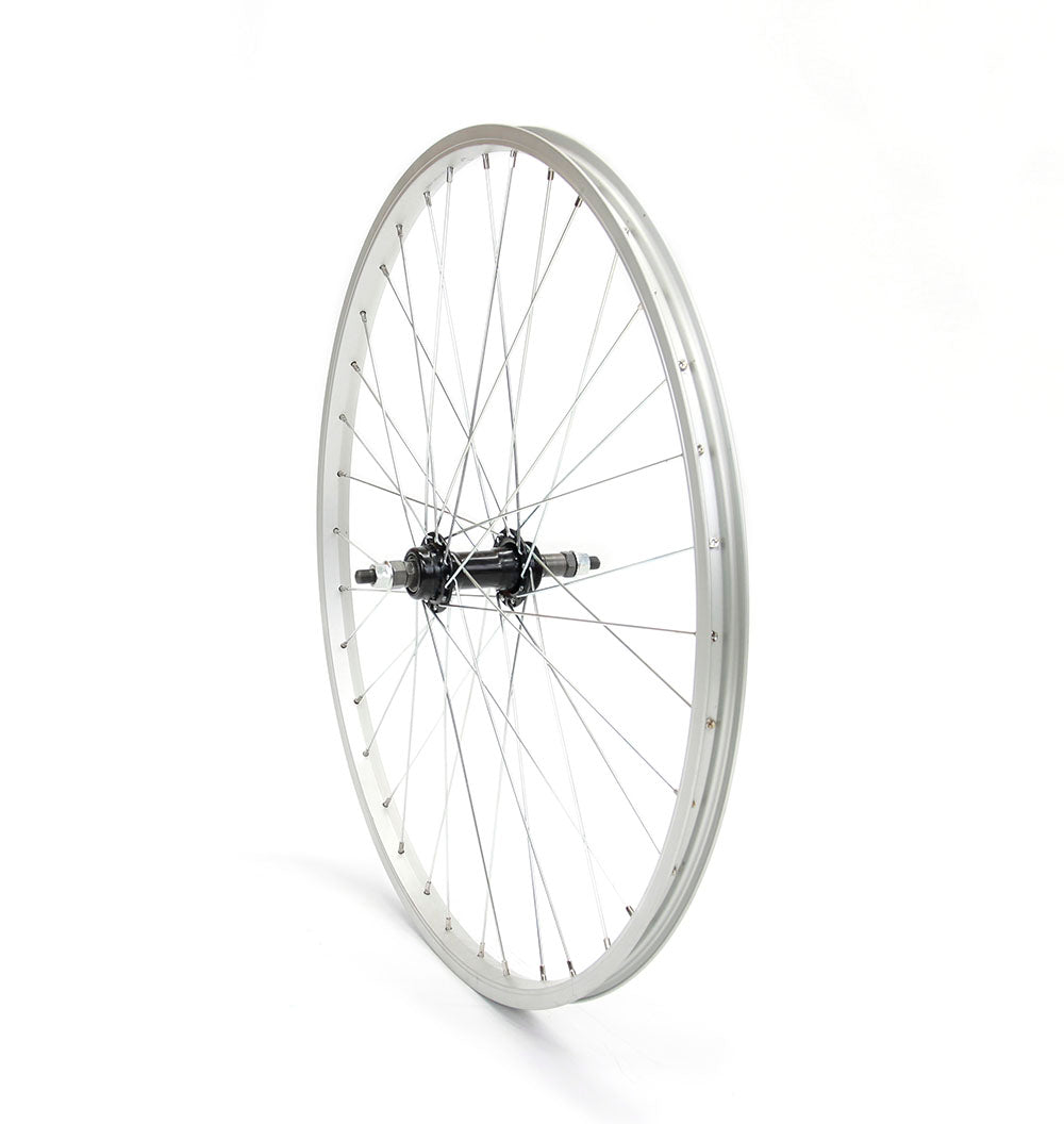 26" x 1.50" MTB wheels. Come in all steel, alloy/steel or alloy/alloy. Fitted with nutted axles.